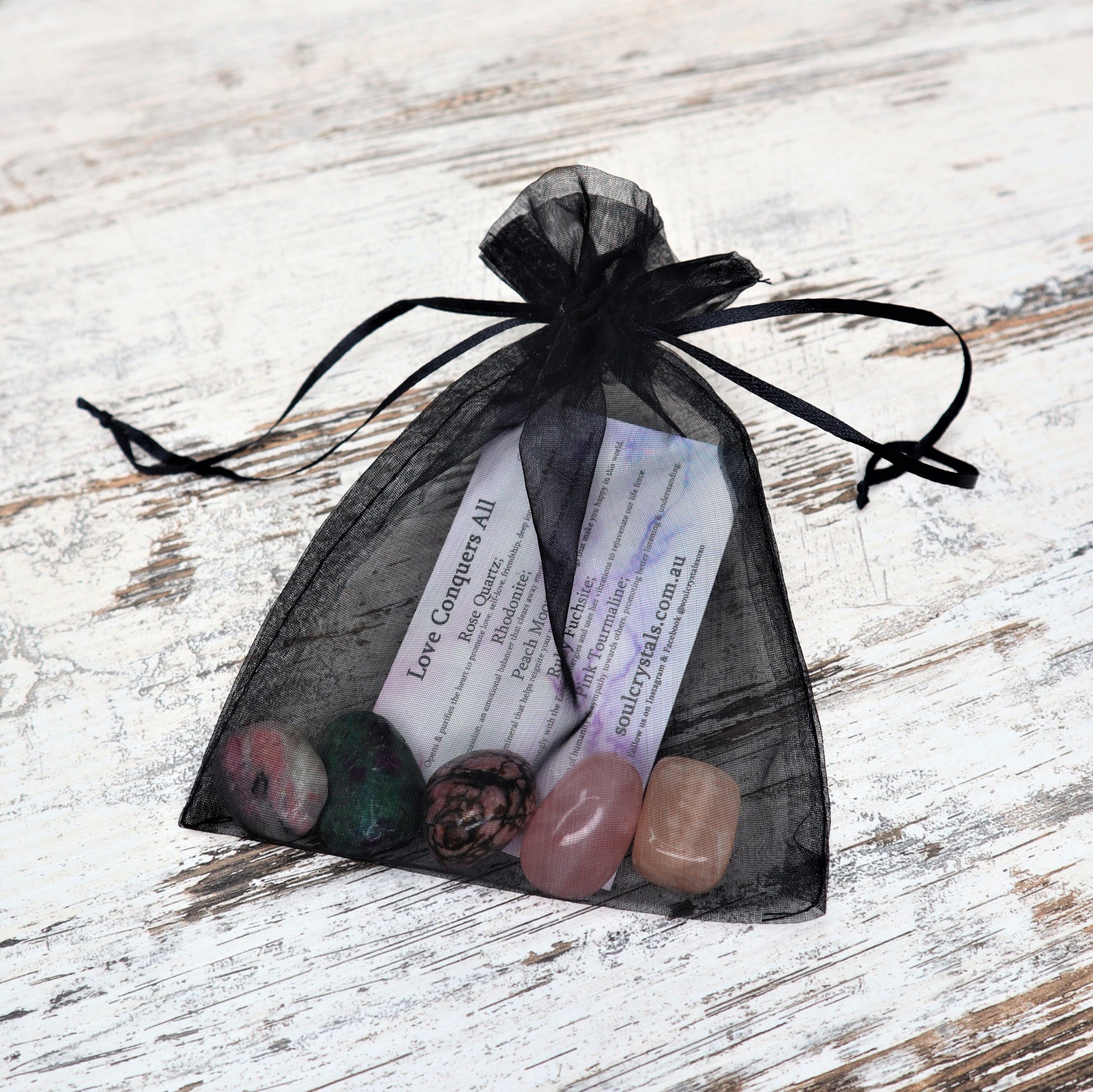 Whether you're calling in self-love, nurturing a relationship, or healing emotional wounds, this kit supports every form of love — from compassion and friendship to forgiveness and deep inner peace. Each stone is intuitively selected and comes with a beautifully designed information card to guide your journey.